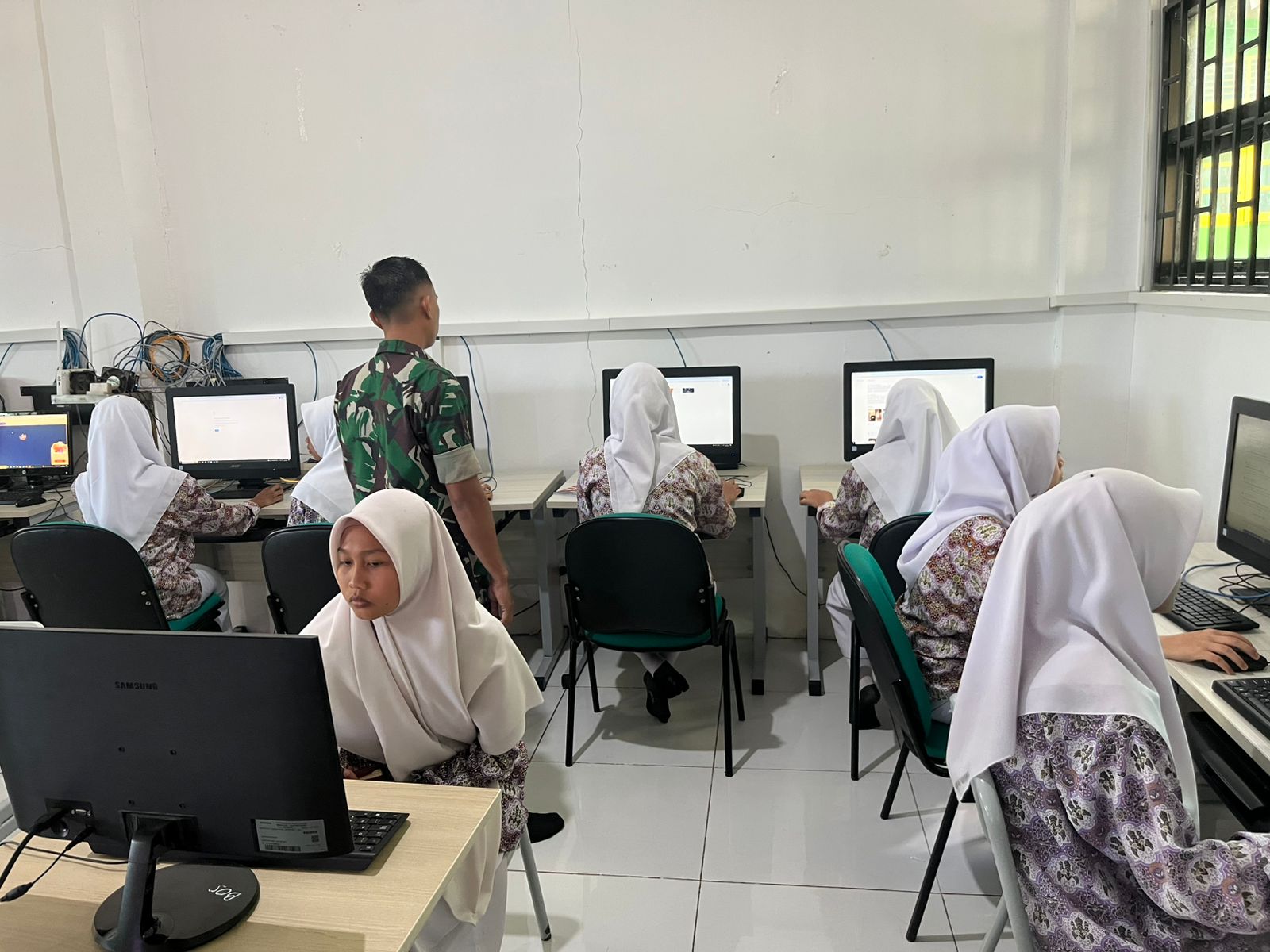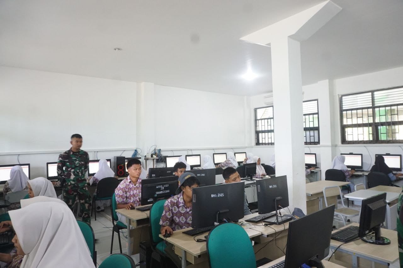 Berlangsung di laboratorium komputer sekolah, suasana terasa khidmat dan penuh disiplin. Para kadet tampak serius menjawab setiap pertanyaan yang terhubung langsung dengan pusat komando di Mabes TNI.