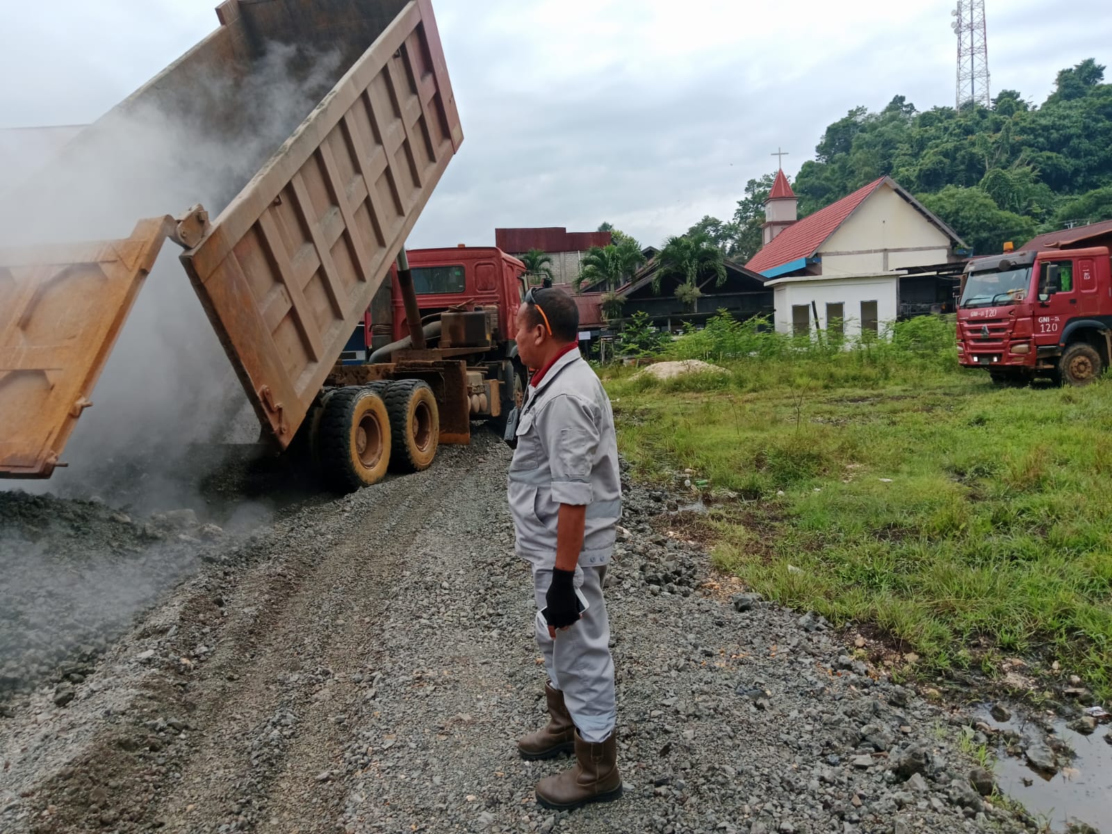 Jelang Peresmian, PT GNI Timbun Jalan dan Tata Halaman Kantor Baru Desa Bunta