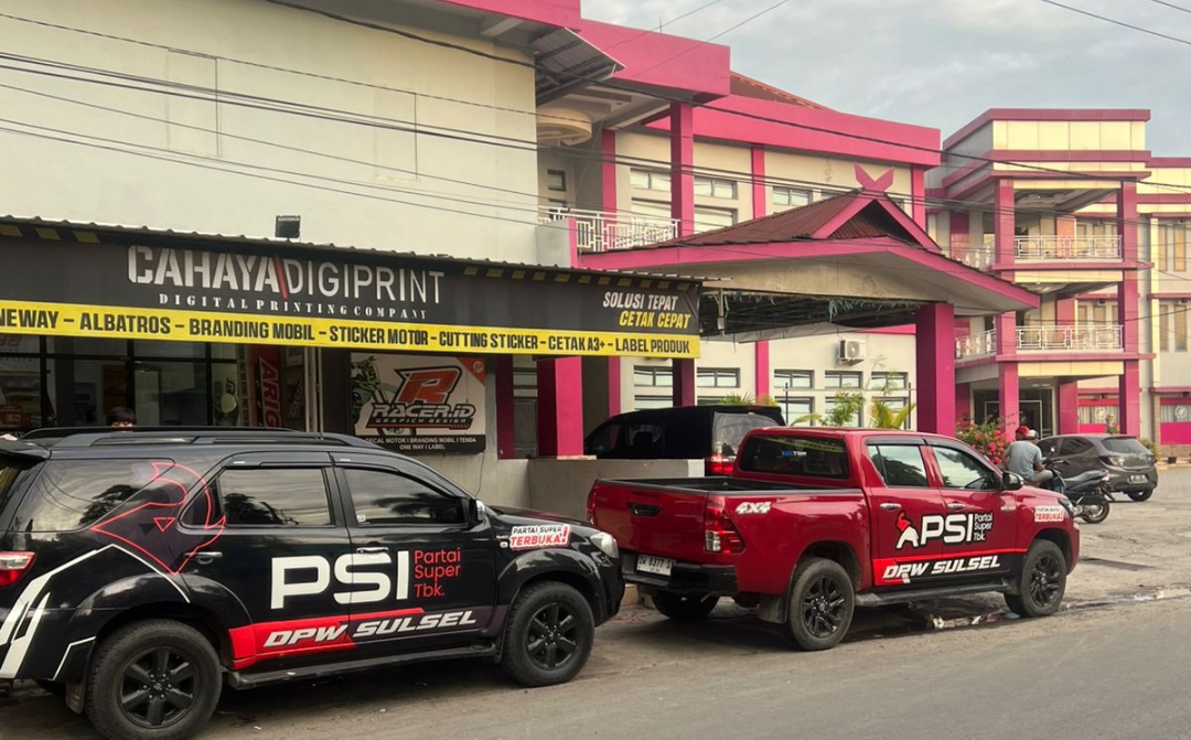 Di Kabupaten Sidrap, sedikitnya ratusan mobil telah dipasangi stiker dan identitas PSI Sulsel.