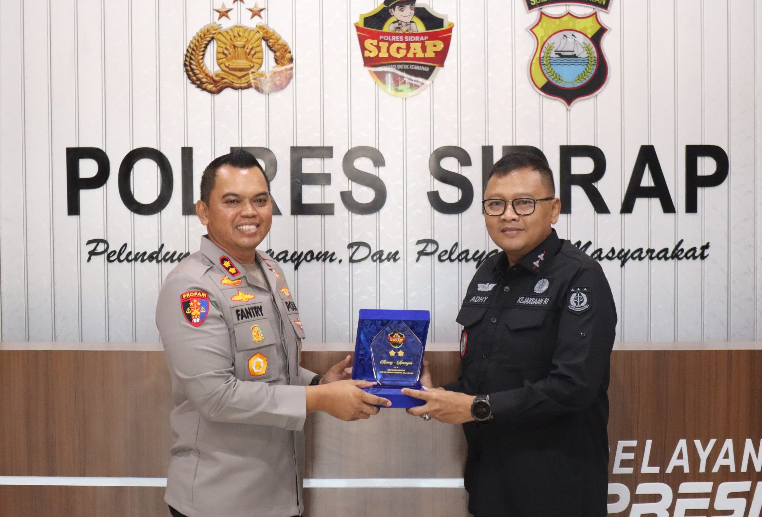 PELOPORNEWS.INFO,SIDRAP–Kepala Kepolisian Resor Sidrap AKBP Fantry Taherong menerima kunjungan audience Kepala Kejaksaan Negeri Kabupaten Sidrap Bapak Adhy Kusumo Wibowo bersama rombongan, kegiatan berlangsung di ruang Kerja Kapolres Sidrap, Selasa (11/11/25) pagi