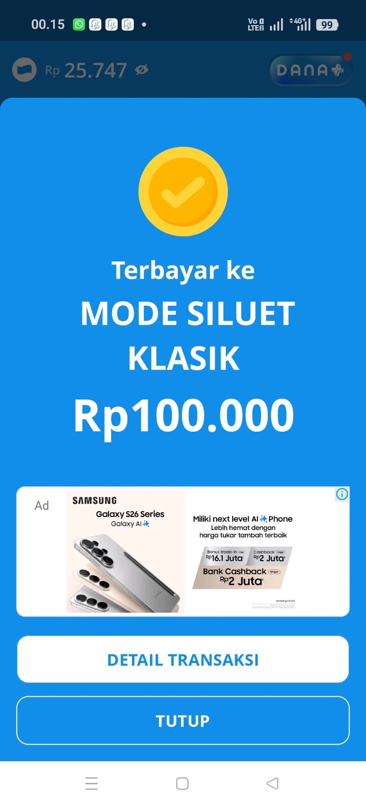 Lanai diminta melakukan pembayaran via scan QR Code sebesar Rp 100.000. Uang pun langsung ditransfer.