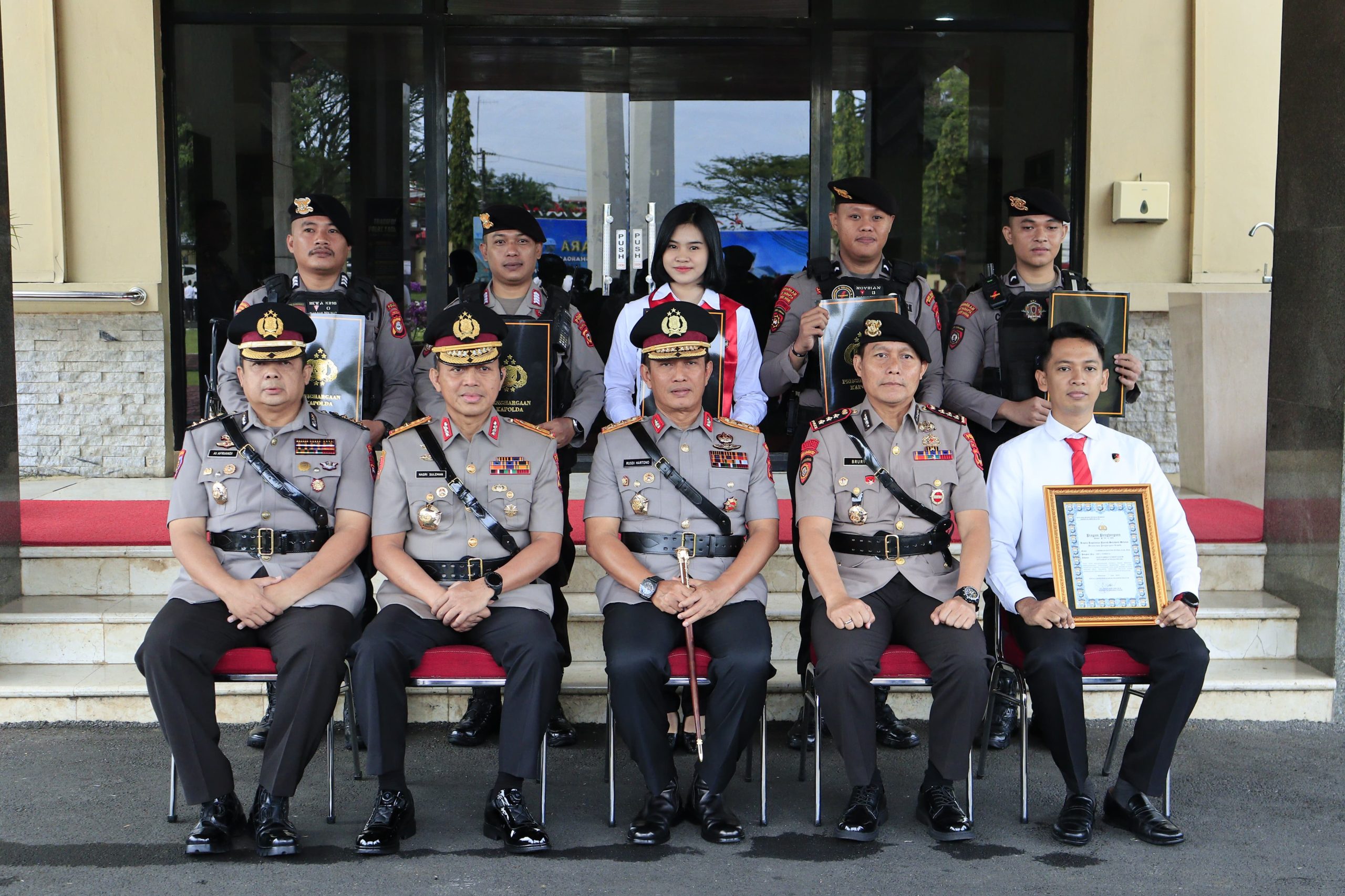 Adapun sebagai perwakilan penerima penghargaan AKBP Dr. FANTRY TAHERONG, S.H., S.I.K., M.H. Kapolres Sidrap beserta 18 personel, AKBP EDY SABHARA MANGGABARANI, S.I.K. Kapolres Pinrang beserta 48 personel Ditreskrimum dan Polres Palopo, AKP LUMBRIAN HAYUDI PUTRA, S.I.K., M.H. Kasi Pammat Ditsamapta beserta 5 personel, AKP BAHTIAR, S.Sos., S.H., M.H. Kasatreskrim Polres Gowa beserta 47 personel dan IPTU DIDI SUTIKNO MUGIARNO, S.Tr.K., CPHR. Kasatresnarkoba Polres Sidrap beserta 14 personel.