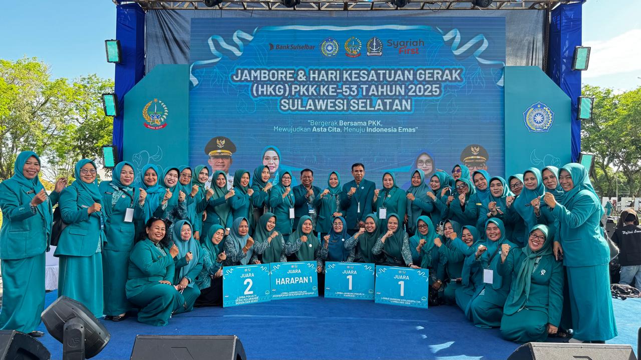PELOPORNEWS.INFO,SIDRAP, – Tim Penggerak Pemberdayaan dan Kesejahteraan Keluarga (TP PKK) Kabupaten Sidenreng Rappang kembali menorehkan prestasi gemilang di tingkat Provinsi Sulawesi Selatan. Pada ajang Jambore dan Hari Kesatuan Gerak (HKG) PKK ke-53 yang dipusatkan di Kabupaten Bone, 3–4 Oktober 2025, TP PKK Sidrap berhasil memborong empat penghargaan bergengsi sekaligus.